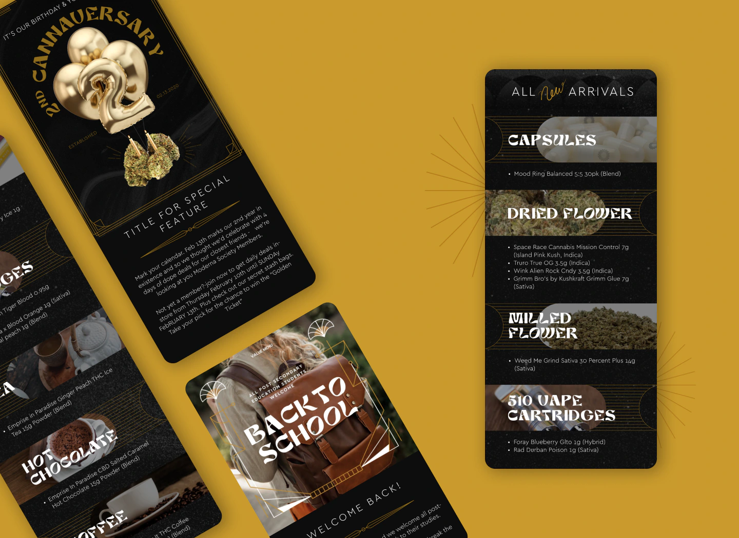 We love helping local businesses punch above their weight. Especially an independent cannabis retailer competing against a tide of national retailers with a lot bigger budgets. To play in this arena and succeed, we would need to work smarter, be agile and really showcase what Moderna does better than anyone else - customer service. Targeting both the connoisseur and the curious, Moderna’s staff truly know their stuff, but they also pride themselves on providing down-to-earth, approachable advice for anyone looking to navigate the cannabis space. They already had a loyal local audience - to know Moderna is to love them - we just needed to help make a few new intros. To do so, we prepared a marketing strategy that would engage a local audience beyond the usual pot shoppers. Moderna just so happens to be positioned right in the middle of Westman Village. It’s also part of a buzzing suburban community with a plethora of shops and restaurants. Our strategy looked to engage both a mature market of cannabis-curious shoppers as well as the local community of shop workers - and to increase sales amongst their established clientele. With this in mind, we ramped up and tidied up their digital touchpoints with a new social media strategy, loyalty program, newsletter, and content strategy. We helped to launch their home delivery program and created a high-impact bus bench campaign in the surrounding areas. We took the established brand mark and ran with the art deco up, market vibe, but we looked to contrast the aesthetic with a tongue-in-cheek, playful, down-to-earth tone of voice. And it’s working. Since kicking off the campaign, Moderna has seen its social media engagement and follower count grow and they’ve had footfall increase into the store with average basket size steadily on the rise. All while other cannabis retailers have been seriously feeling the pinch.